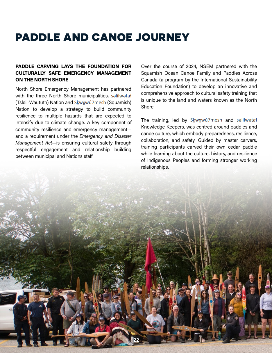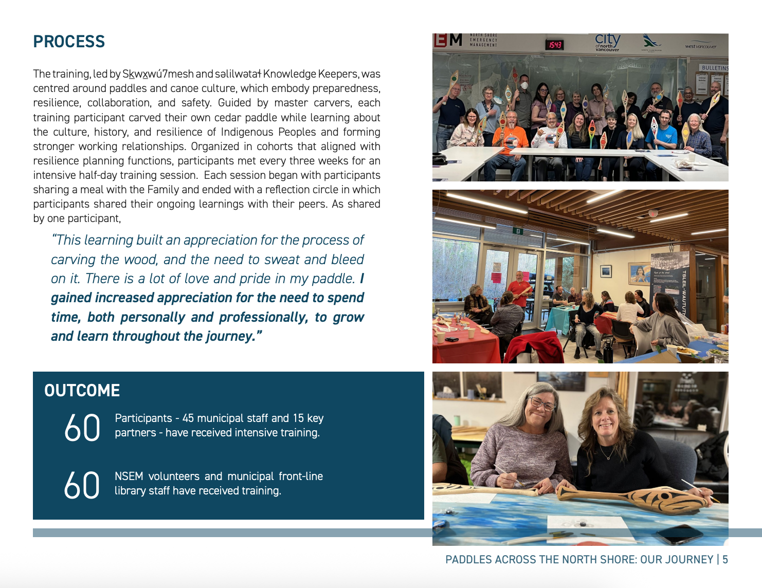 Created layout to describe the 2024 Cultural Safety and Humility training journey of North Shore Emergency Management led by the Squamish Ocean Canoe Family and International Sustainability Education Foundation.