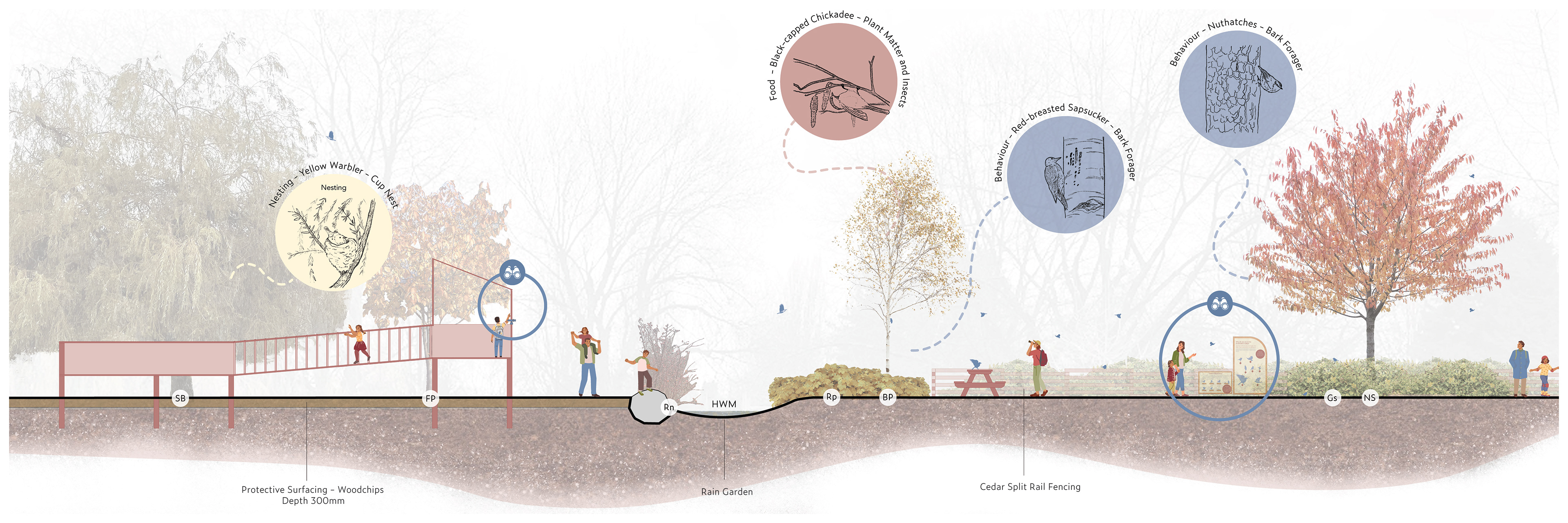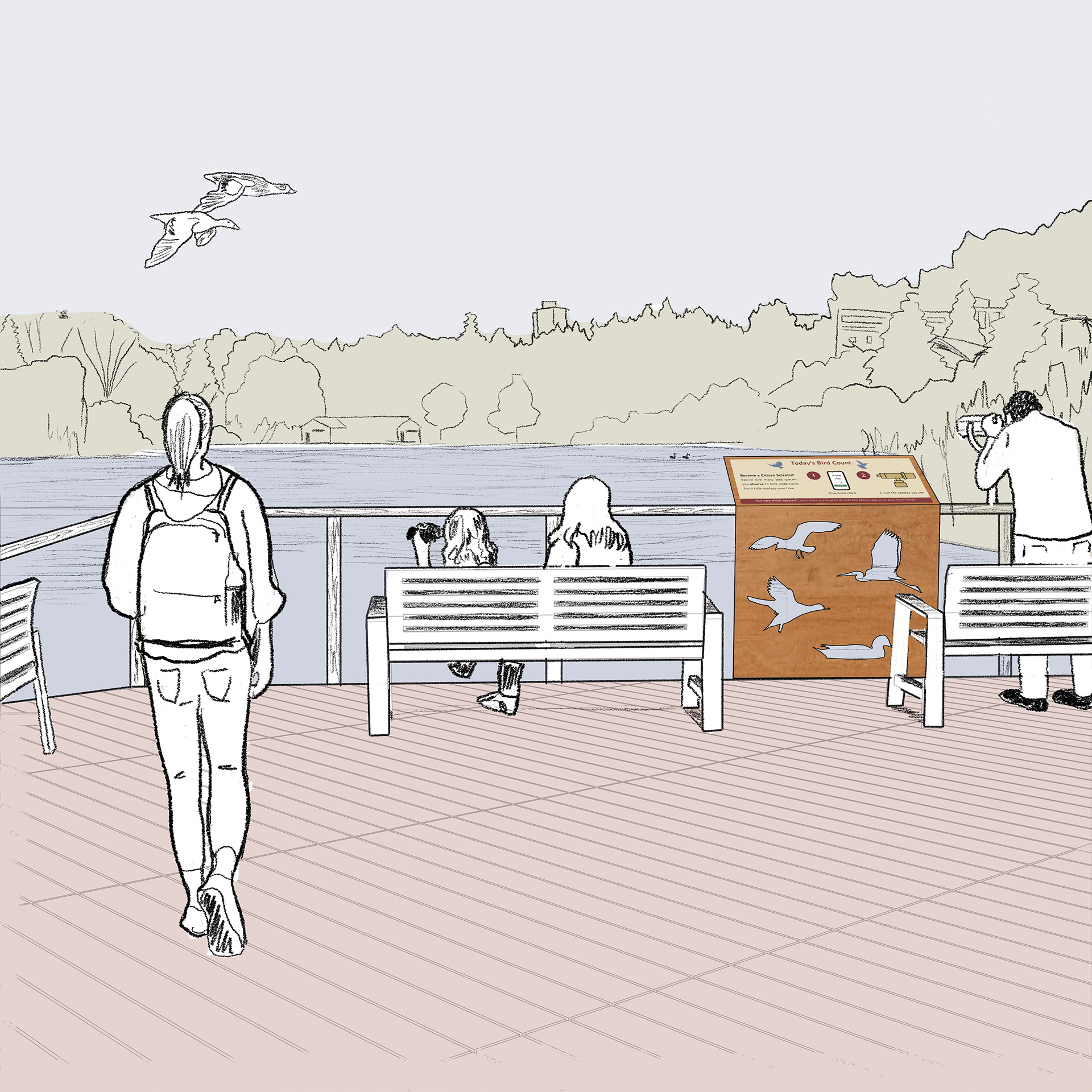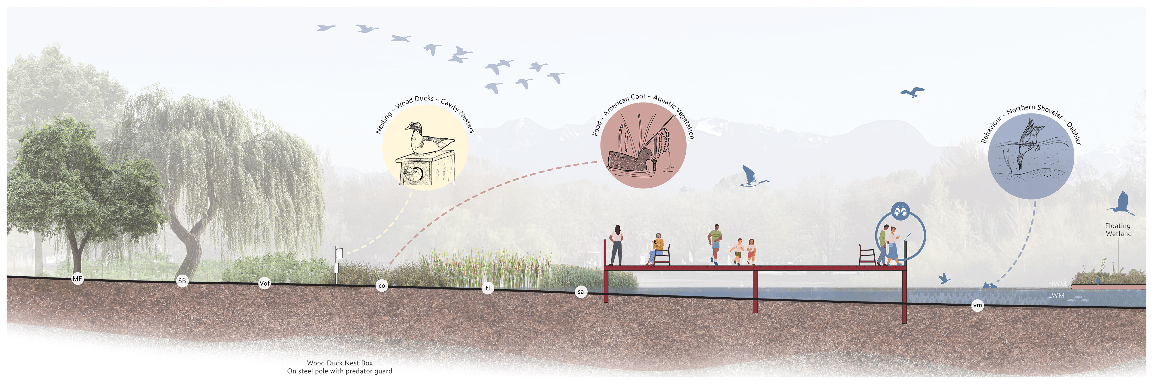 This project considers how opportunities for citizen science could be designed in urban parks to inform the design and monitoring of bird habitat restoration sites. Landscape architects are well positioned to design interventions for citizen scientists and birders to collect data in more consistent ways by aligning site programming with existing citizen science projects. This project is focused on applications of citizen science at Trout Lake (John Hendry Park) in Vancouver, but lessons learned could be applied more broadly to inform future bird habitat restoration, public education, and landscape monitoring approaches in urban areas.